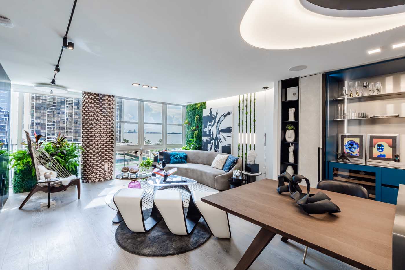 BRICKELLLefkowitz Condo2022 The beautiful view, the clients sophisticated taste, and their art collection were our inspiration for our Design Solution. We began with the improvement of the long entrance which lacked interest and was missing a focal point. A compartmentalized plan layout did not allow proper space flow and made the apartment feel constrained. A…